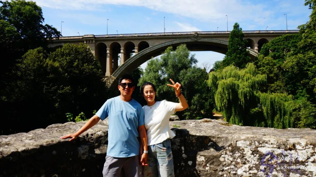 卢森堡 市被称为 “ 欧洲 心脏”,不仅是国家的首都,也是 欧盟三大官方机构所在地之一,与 布鲁塞尔 和 斯特拉斯堡 齐名。 卢森堡 境内所有的公共交通都免费,就这点牛不牛吧,我们出火车站直接上公交,第一站就是阿道夫桥(Pont Adolphe),在公交车上,碰到一个 中国 人,已经定居在 卢森堡 了,小伙很年轻,和我们说阿道夫桥下面有个峡谷,可以下去,风景不错。还别说,我们还真找到了。