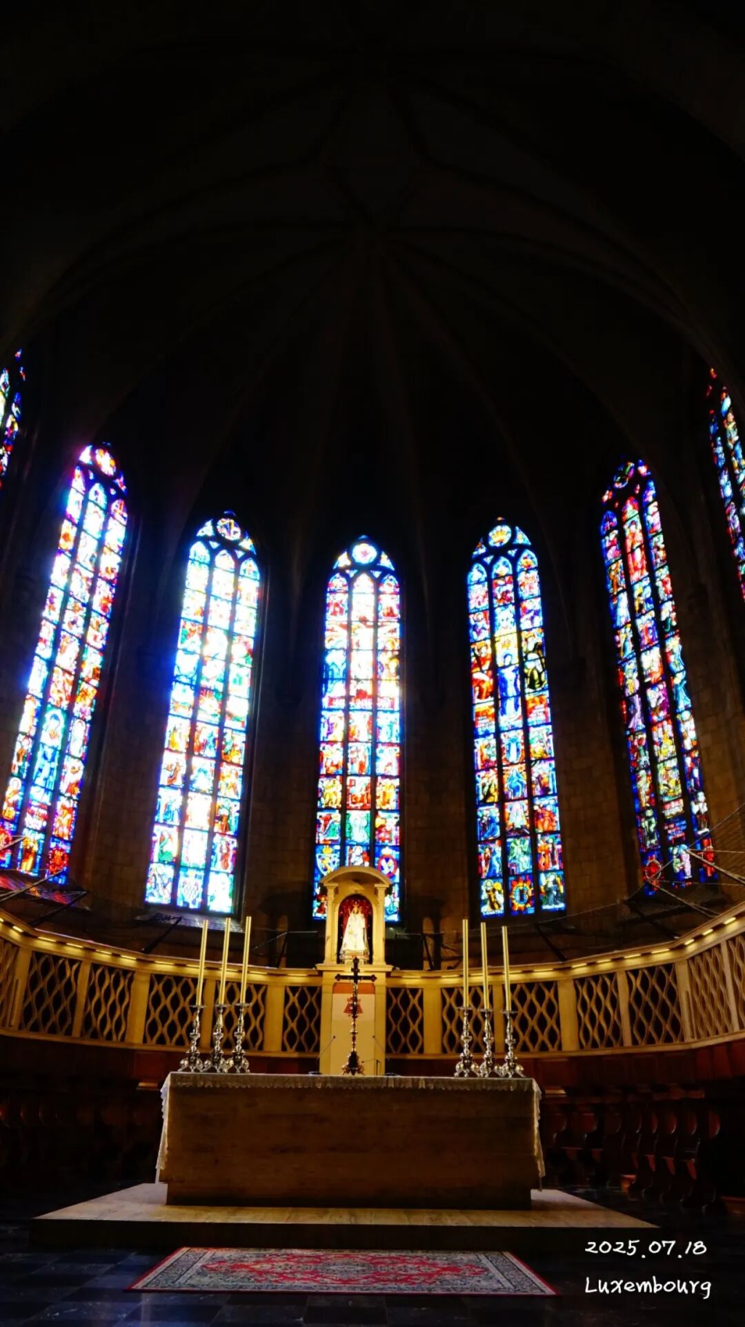 卢森堡 圣母教堂(Cathédrale Notre-Dame de Luxembourg)的内部装饰华丽,融合了多种建筑风格和艺术元素。主祭坛是教堂的中心,通常用于举行弥撒和其他宗教仪式。 卢森堡 圣母教堂的主祭坛装饰精美,常见金色和 大理 石的结合,体现出宗教的庄重与神圣。