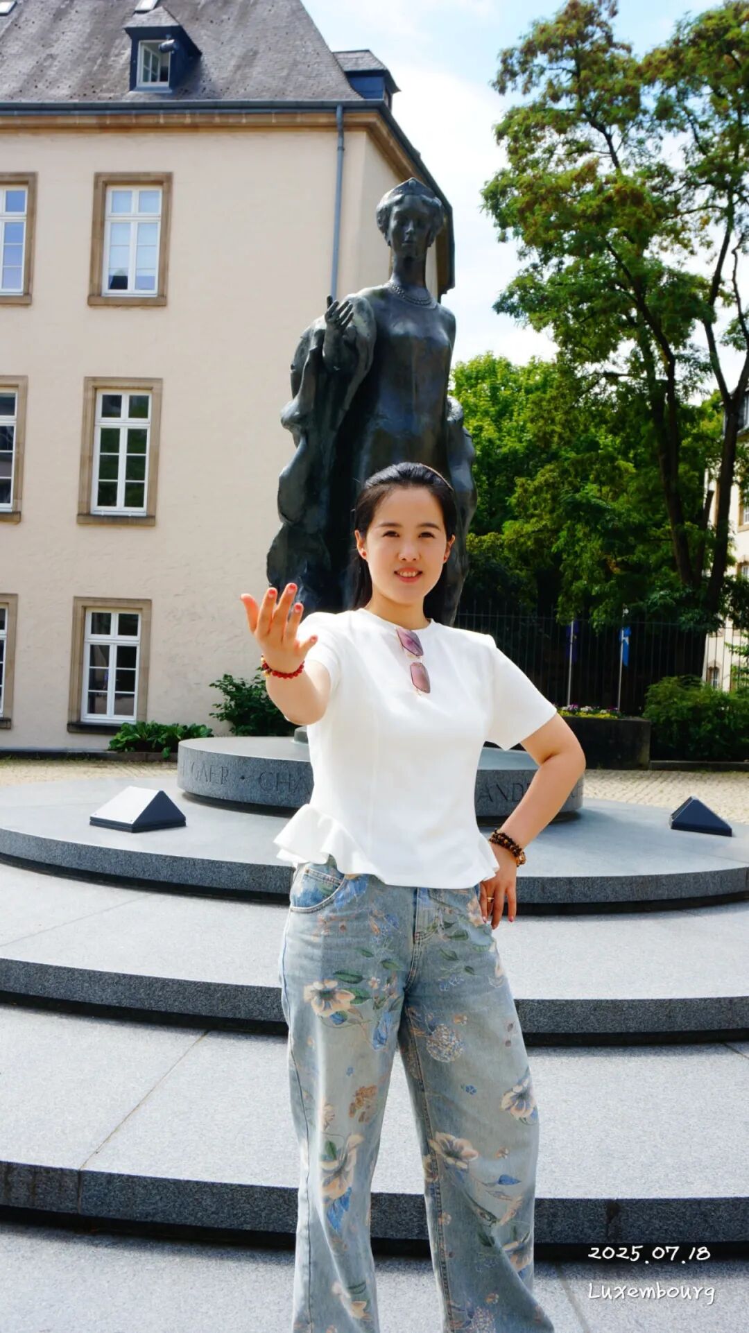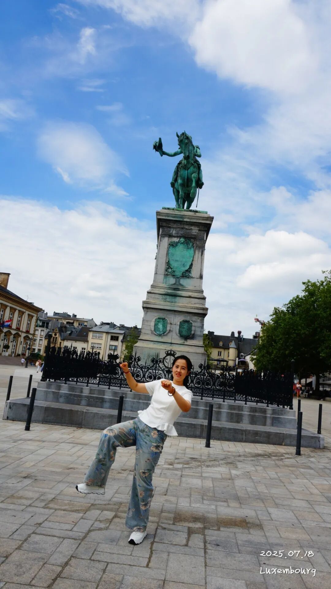 广场中间的骑马雕像是威廉一世(William I)的雕像。他是 荷兰 王国的国王,同时也是 卢森堡 的“大公”。媳妇还别说,你这模仿的还挺像。