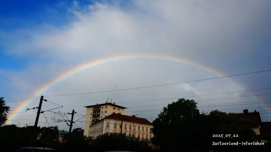 刚刚下完雨,天空就出现了彩虹,媳妇说,这是她见到的最大最清晰的彩虹。