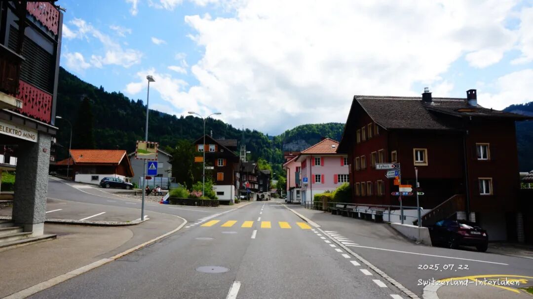 中午的时候,我们到达了 因特拉肯 ,这次订的酒店离 因特拉肯 西站没多远,我们先去酒店,把行李寄存后,准备出来吃点饭,毕竟中午了,也饿了。