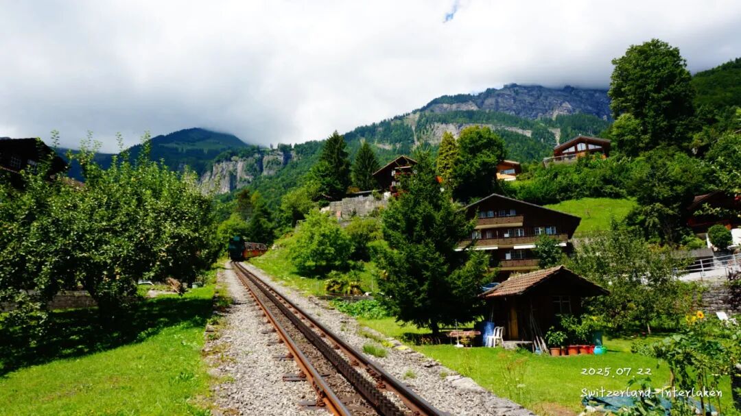 从 布里恩茨 到 龙疆 小镇大概也就半个小时的火车路程,沿路的风景那真是无敌了,这个小房子是我在火车上拍的,坐的火车都是红色的观光火车,大窗户,全视野。