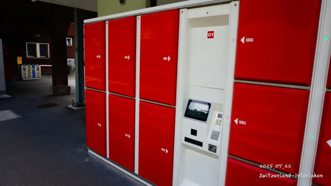 到了小镇,先去趟卫生间,这点得说明一下, 瑞士 的火车站卫生间都是免费的,不像其他国家的火车站,主要是 瑞士 的火车上没有卫生间,都是短途的,而且羊毛出在羊身上嘛,你已经花钱买了火车票,那卫生间在火车站肯定是免费的。为了方便有些拎着大箱子的游客,每个火车站都能看到寄存柜,这柜子老大了,我看到好几个人寄存。