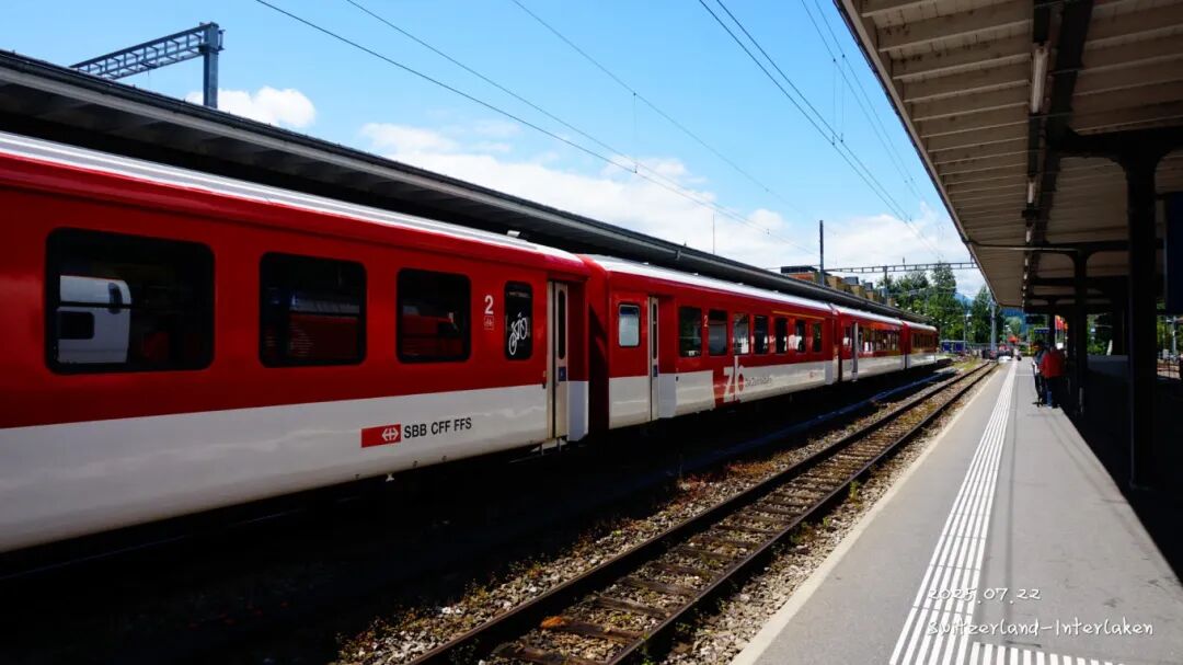 没过多久,车就准点到达,我们就登上火车,驶向 因特拉肯 。
