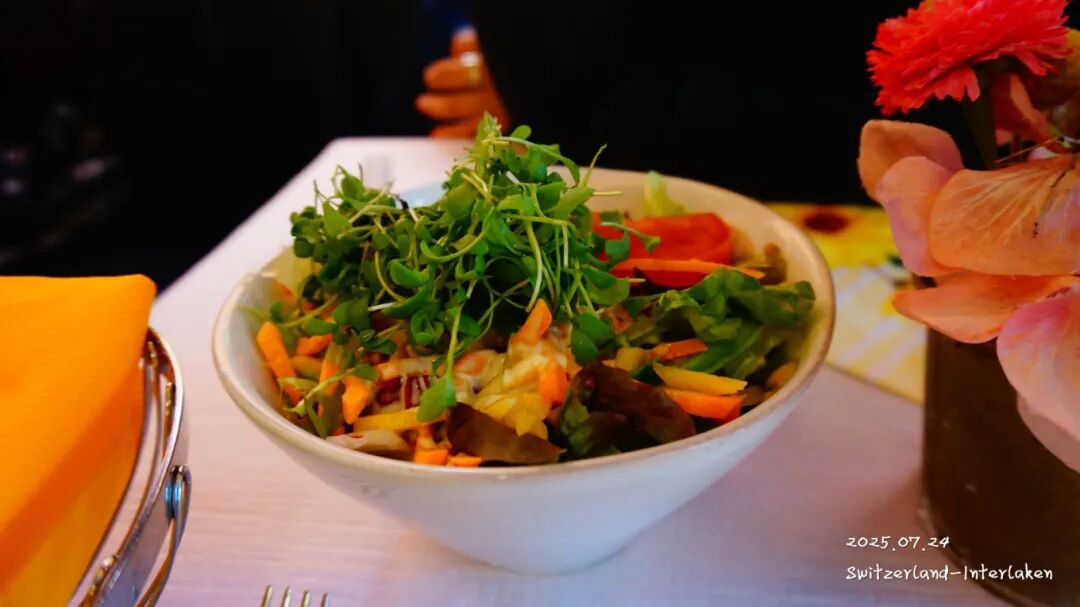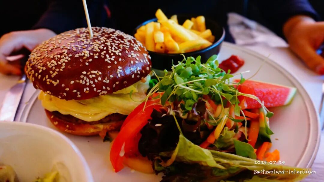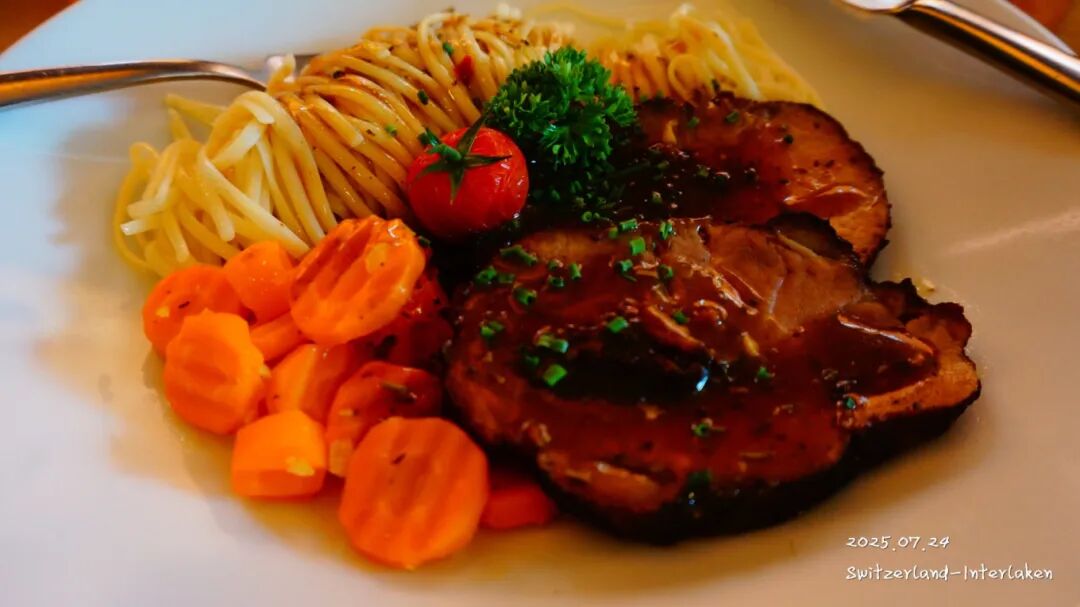 我们看了下时间,去往 因特拉肯 的是上午10点多,去往 图恩 的是下午1点多,如果我们去 图恩 ,那么还需要等很长时间,而且去 卢塞恩 也晚了,所以我们临时决定,还是回 因特拉肯 吧。航程接近1个小时,查不到到了 因特拉肯 ,正好赶上午餐时间。