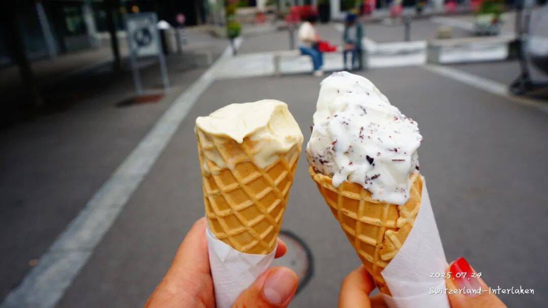 饭后冰淇淋必须配上,直接去媳妇昨天看到的那家,点了 2 个,还别说,味道还不错。