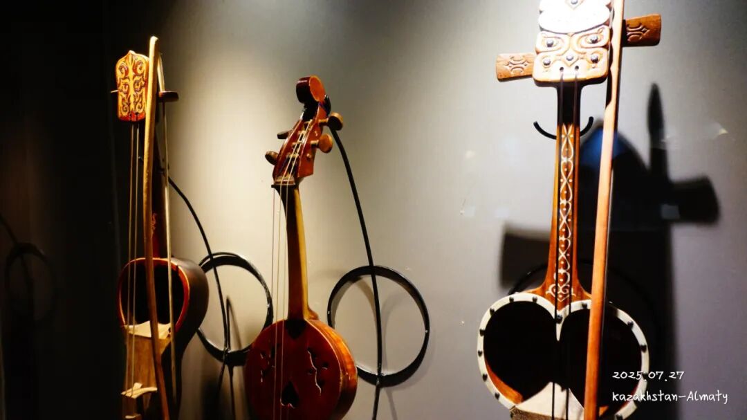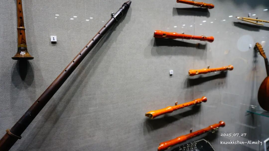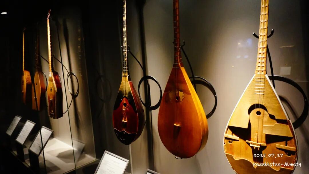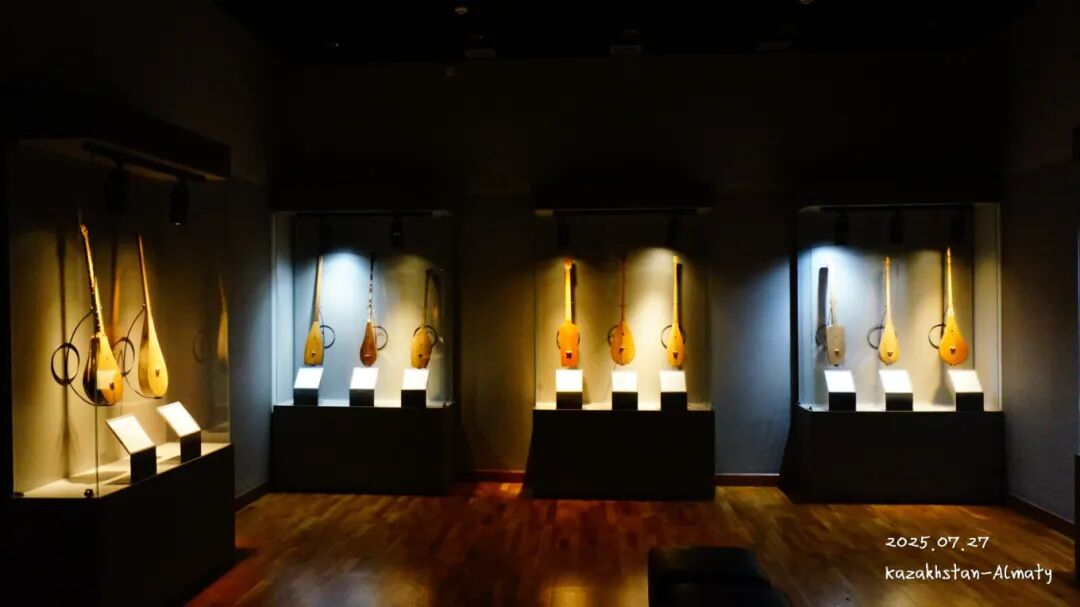 每个乐器的造型都各式各样,馆内收藏有超过 1000 件乐器,涵盖 60 多种民俗乐器,包括 哈萨克斯坦 各个地区的民族乐器以及来自 34 个国家的乐器。其中,冬不拉是馆藏的主角,约有 13 种 120 余件,此外还收藏有阿拜、江布尔等著名诗人和音乐家使用过的乐器共 53 种。