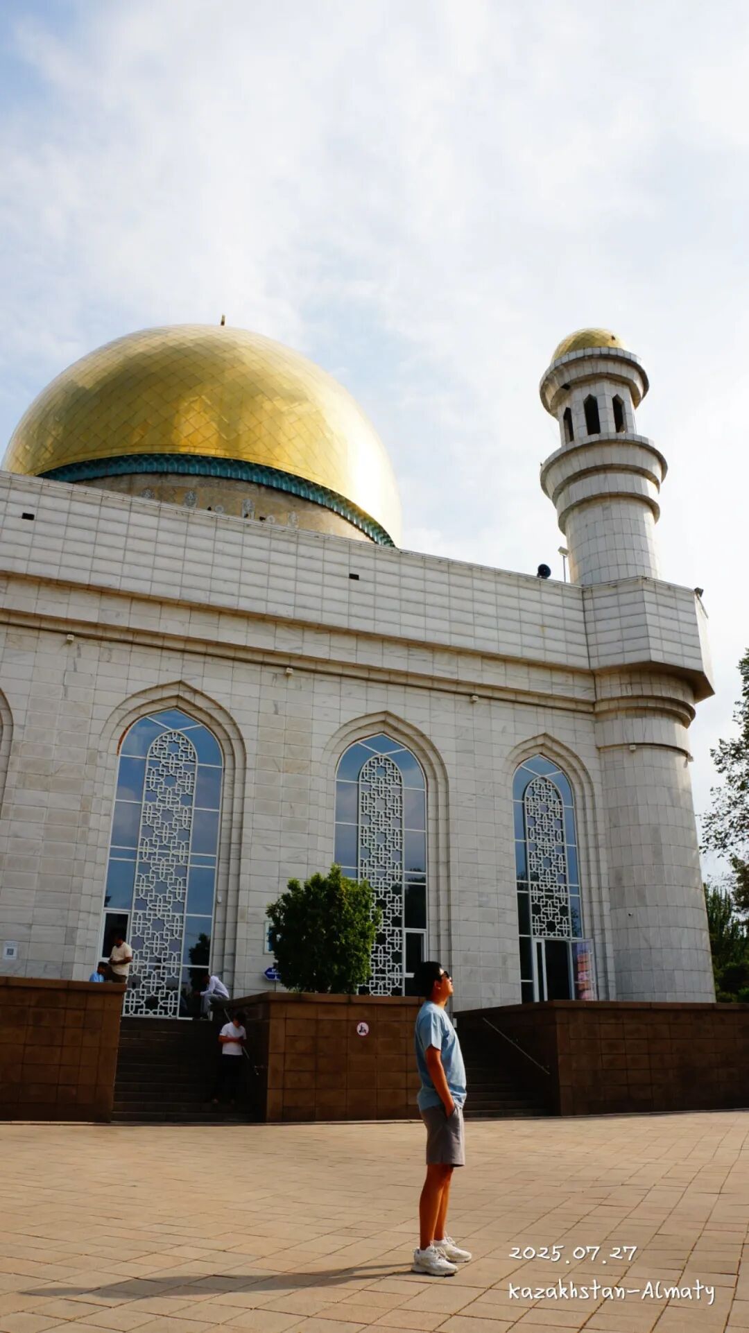饭后我们去最后的一个景点, 阿拉木图 清真寺,中央清真寺位于 阿拉木图 市 普希金 街,始建于 1996 年,1999 年 7 月建成,是 哈萨克斯坦 第二大的清真寺,仅次于 阿斯塔纳 清真寺。
