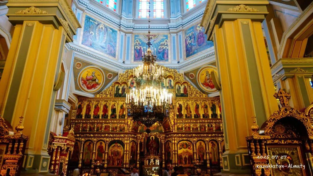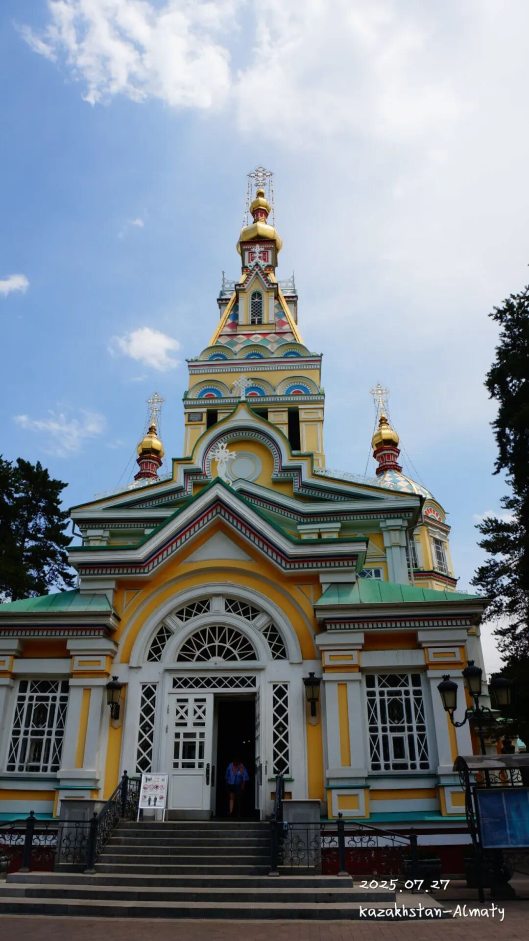 早上 10 点,到达 阿拉木图 ,下飞机换钱,下载了当地的 app,用 app 打车去市里,先去教堂,地标性建筑。