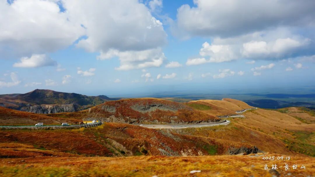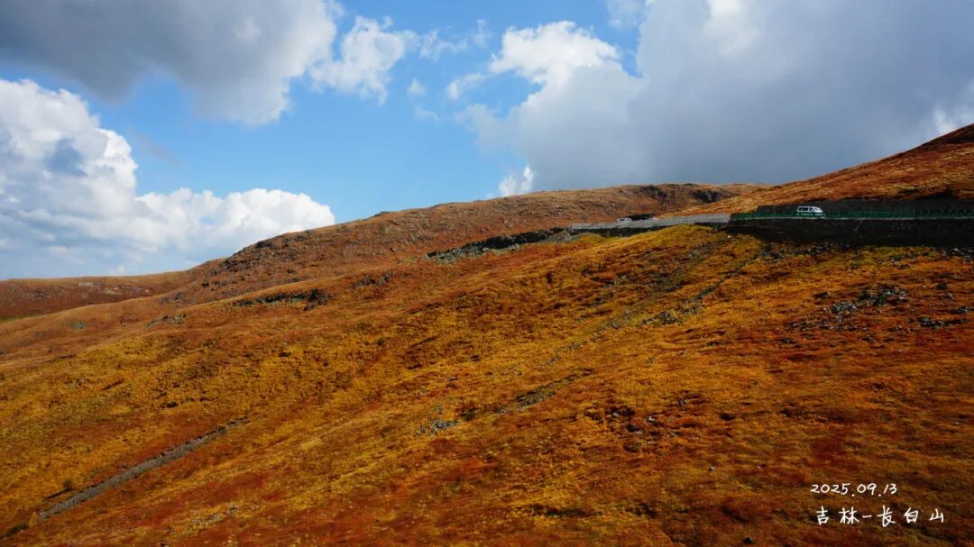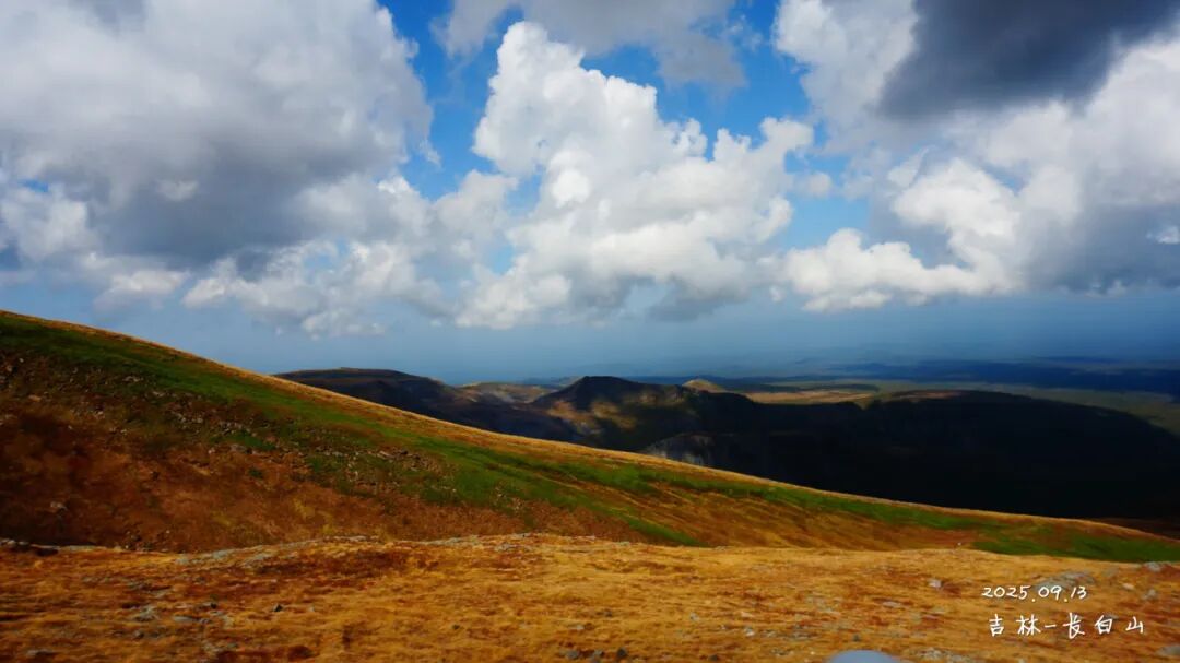 现在是9月份,天气已经变冷,尤其在 东北 ,已经入秋了,再加上 长白山 海拔较高,所以植被较少,看这植被,颜色已经变成了黄褐色。