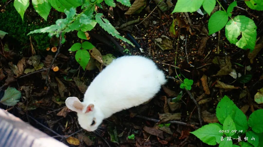 看到一只小兔子,小兔子白白的,早上起来先去后面的原始森林转转。